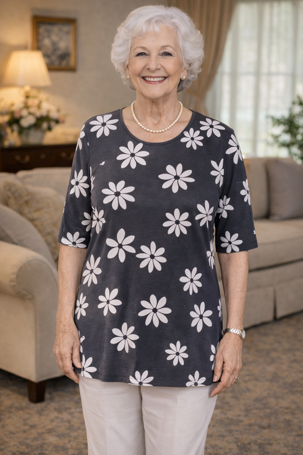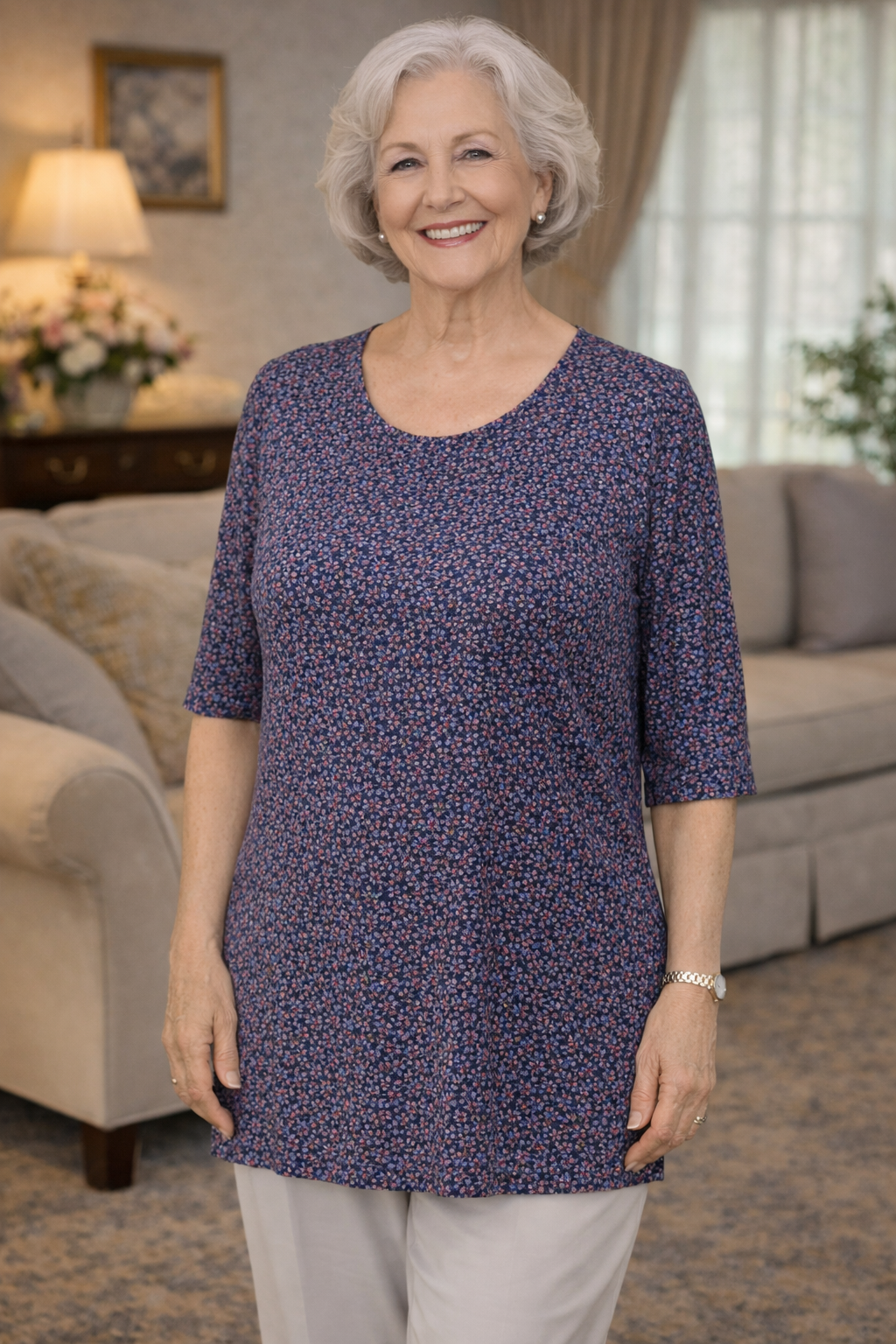 Women’s Adaptive Top 2-1165 – Floral Navy