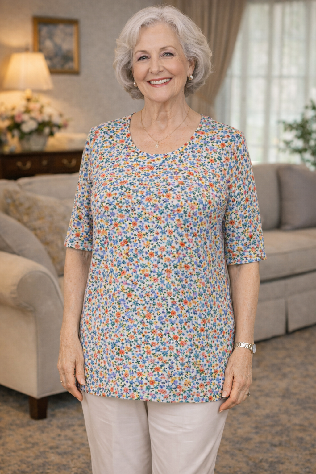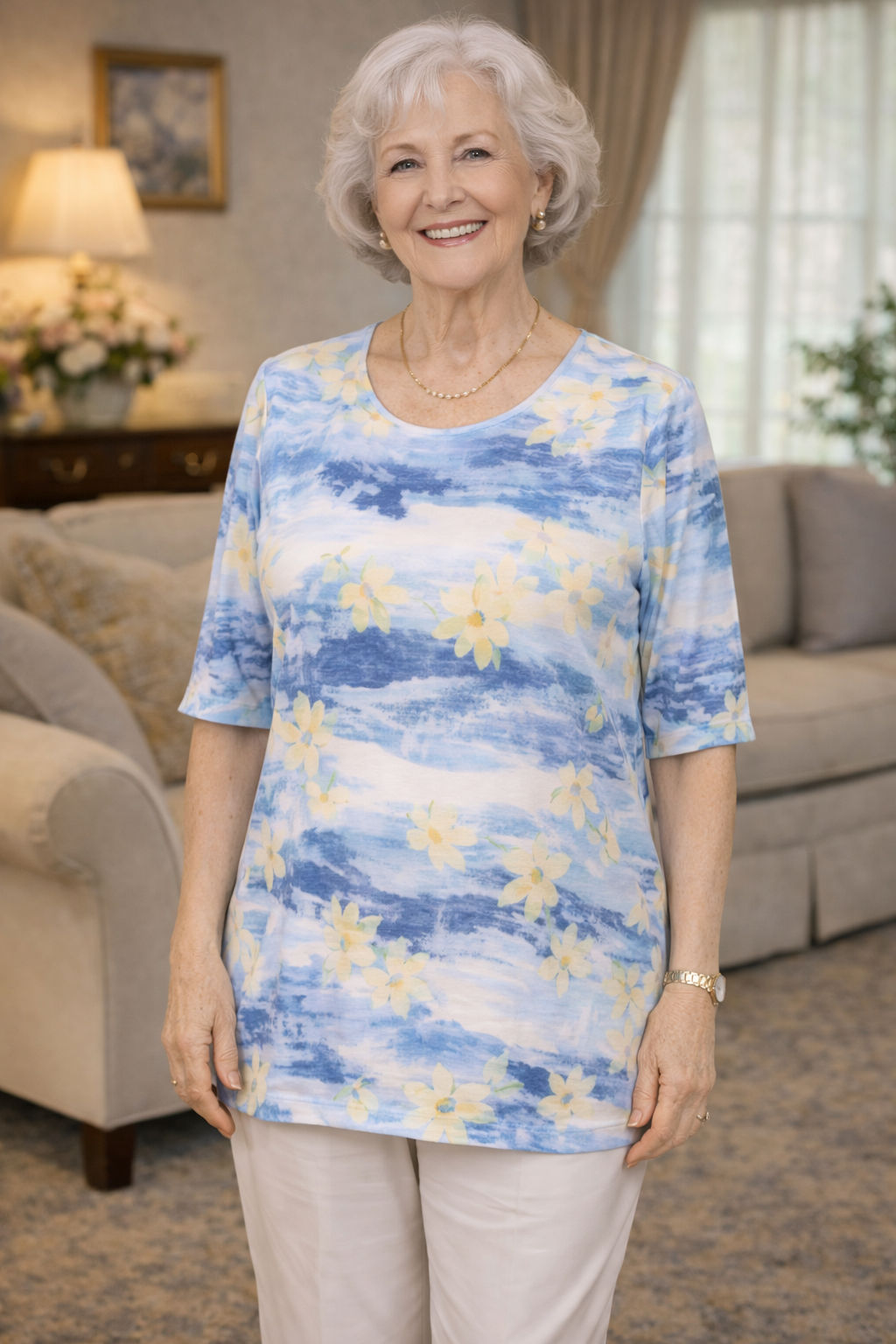 Women’s Adaptive Top 1-3154 – White Blue Floral Print